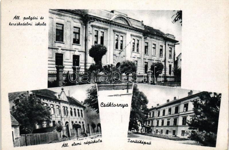 Beschreibung: Csáktornya, Állami polgári és kereskedelmi iskola, népiskola, tanítóképző, Balkányi Lajos kiadása / schools, teachers training institute