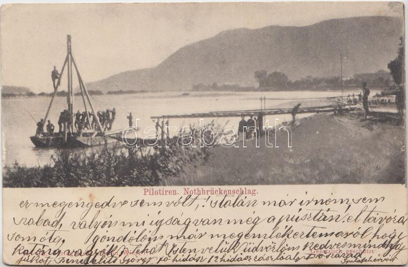 Pilotiren, Nothbrückenschlag / soldiers, bridge construction https://www.darabanth.com/de/234-Fernauktion/234.0/Ansichtskarten/Militaria~40118/Pilotiren-Nothbruckenschlag-soldiers-bridge-construction~II1066137