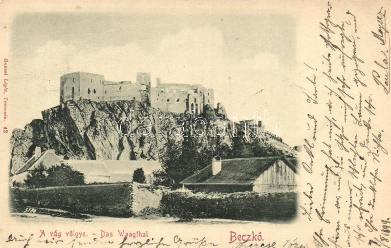 1899 Beckó, Vág völgye, vár / valley, castle https://www.darabanth.com/de/234-Fernauktion/234.0/Ansichtskarten/Slowakei~7/1899-Becko-Vag-volgye-var-valley-castle~II1064179