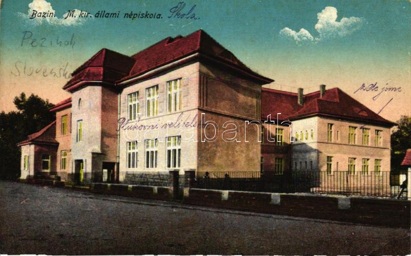 Bazin, Pezinok; állami népiskola / school (r) https://www.darabanth.com/de/234-Fernauktion/234.0/Ansichtskarten/Slowakei~7/Bazin-Pezinok-allami-nepiskola-school-r~II1065382