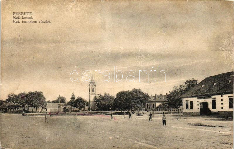 Beschreibung: Perbete, Református templom, Weisz Izidor kiadása / Calvinist church (r)