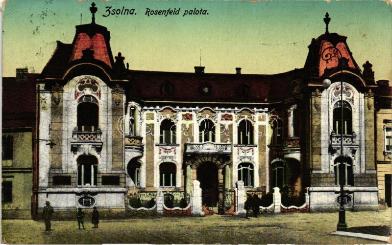 Zsolna, Rosenfeld palota, Schwarcz Vilmos kiadása / palace https://www.darabanth.com/de/234-Fernauktion/234.0/Ansichtskarten/Slowakei~7/Zsolna-Rosenfeld-palota-Schwarcz-Vilmos-kiadasa-palace~II1067498