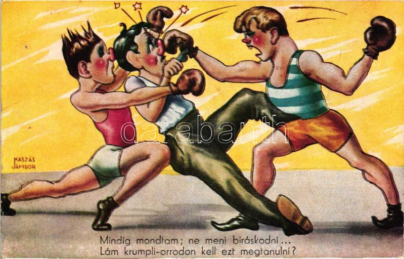 Box match, humour, NM 407/12. s: Kaszás Jámbor (EK) https://www.darabanth.com/de/234-Fernauktion/234.0/Ansichtskarten/Sport~40145/Box-match-humour-NM-40712-s-Kaszas-Jambor-EK~II1016393