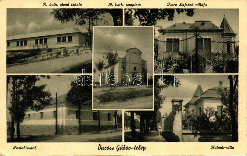 Beschreibung: Budapest XXII. Baross Gábor telep, Római katolikus templom és elemi iskola, Imre Lajosné villája, Postahivatal, Kalmár villa