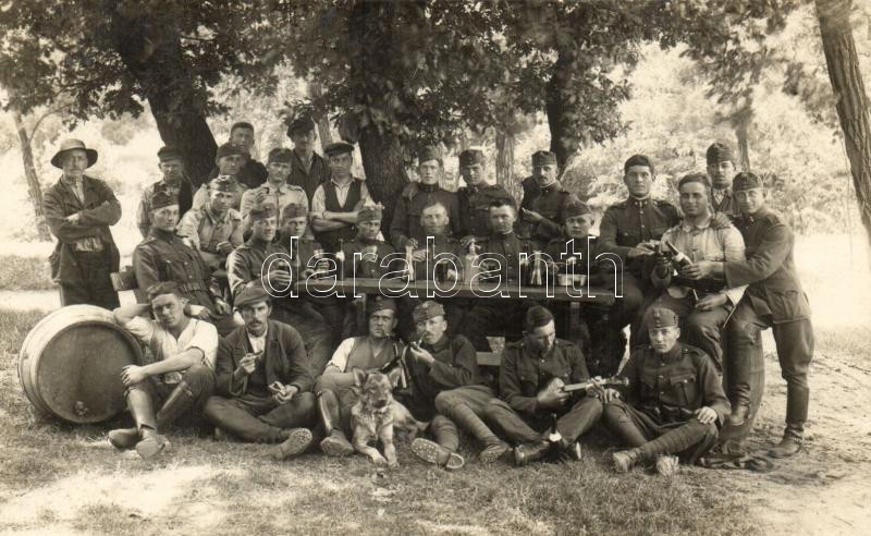 Budapest, magyar borozó és étkező katonák, kutya, csoportkép group pho... https://www.darabanth.com/de/234-Fernauktion/234.0/Ansichtskarten/Ungarn~5/Budapest-magyar-borozo-es-etkezo-katonak-kutya-csoportkep-group-photo~II1009901