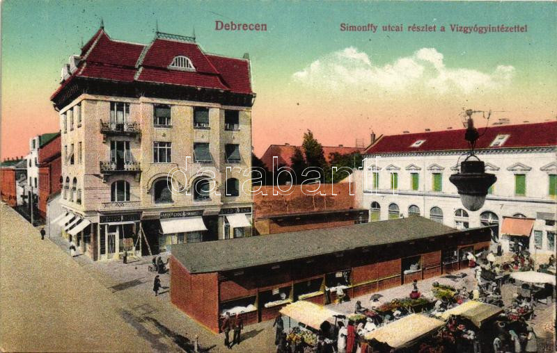 Debrecen, Simonffy utca, vízgyógyintézet, üzletek https://www.darabanth.com/de/234-Fernauktion/234.0/Ansichtskarten/Ungarn~5/Debrecen-Simonffy-utca-vizgyogyintezet-uzletek~II1069629