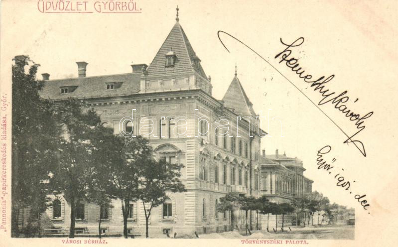 Győr, városi bérház, törvényszéki palota (EK) https://www.darabanth.com/de/234-Fernauktion/234.0/Ansichtskarten/Ungarn~5/Gyor-varosi-berhaz-torvenyszeki-palota-EK~II1064186