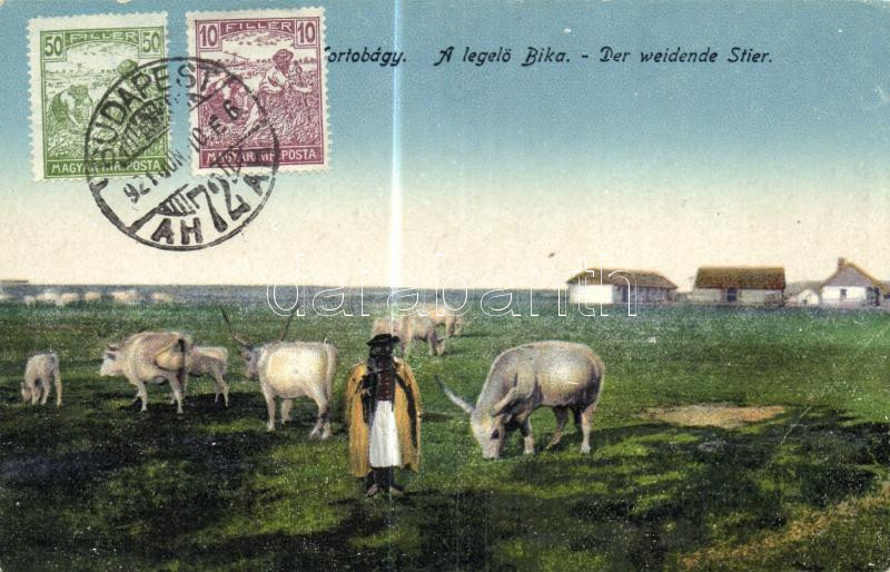 Hortobágy, a legelő bika, folklór (EB) https://www.darabanth.com/de/234-Fernauktion/234.0/Ansichtskarten/Ungarn~5/Hortobagy-a-legelo-bika-folklor-EB~II1064208
