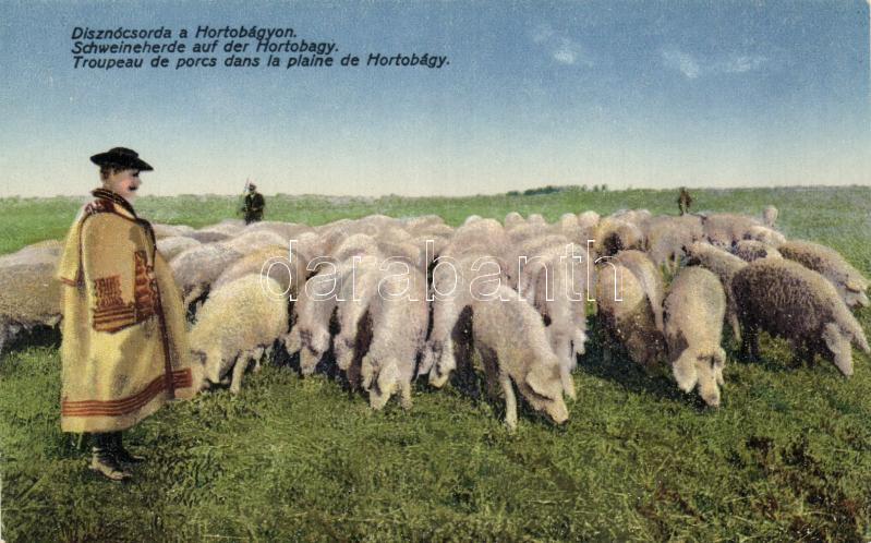 Hortobágy, disznócsorda, folklór, Divald és Monostory https://www.darabanth.com/de/234-Fernauktion/234.0/Ansichtskarten/Ungarn~5/Hortobagy-disznocsorda-folklor-Divald-es-Monostory~II1064708