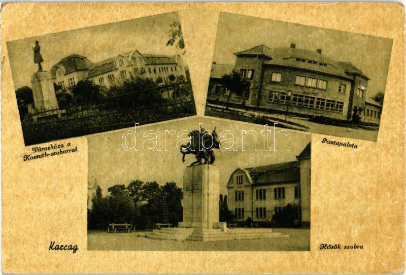 Karcag, Városháza, Kossuth szobor, postapalota, Hősök szobra (EK) https://www.darabanth.com/de/234-Fernauktion/234.0/Ansichtskarten/Ungarn~5/Karcag-Varoshaza-Kossuth-szobor-postapalota-Hosok-szobra-EK~II1064900