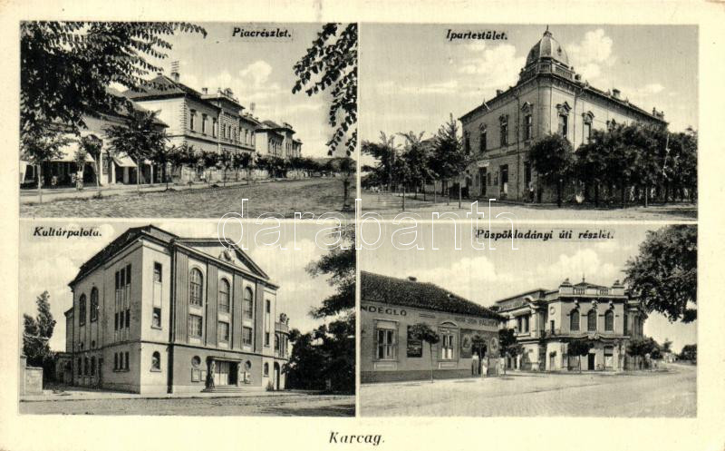 Karcag, piac, Ipartestület, Kultúrpalota, Püspökladányi út, vendéglő (... https://www.darabanth.com/de/234-Fernauktion/234.0/Ansichtskarten/Ungarn~5/Karcag-piac-Ipartestulet-Kulturpalota-Puspokladanyi-ut-vendeglo-EK~II1064528