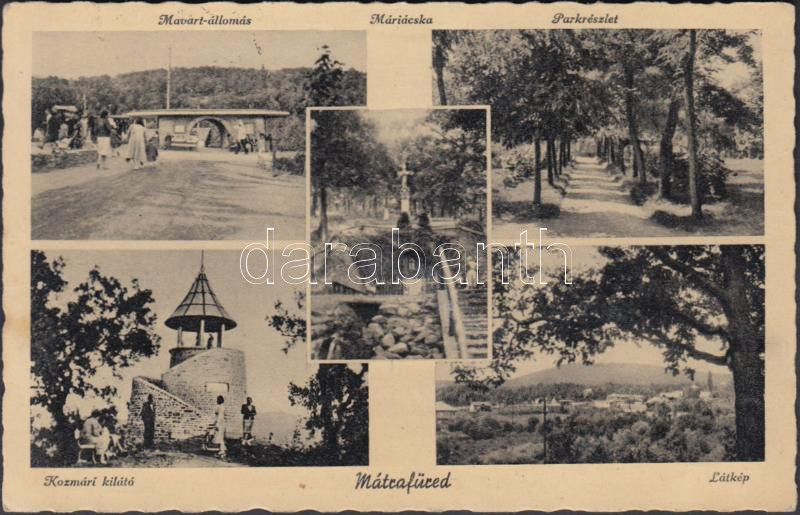 Mátrafüred, Mavart állomás, Máriácska, Park, Kozmári kilátó (fl) https://www.darabanth.com/de/234-Fernauktion/234.0/Ansichtskarten/Ungarn~5/Matrafured-Mavart-allomas-Mariacska-Park-Kozmari-kilato-fl~II1004593