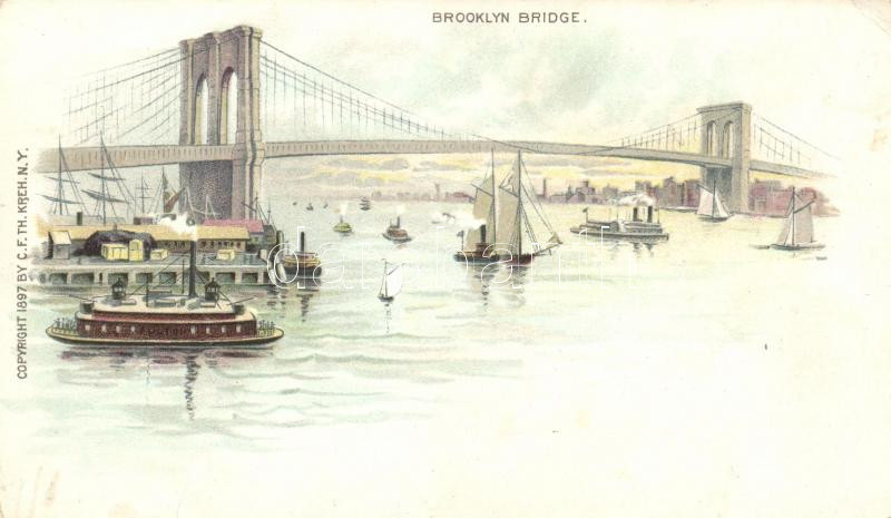 Beschreibung: New York, Brooklyn Bridge, litho (13,6 X 8 cm) (EK)