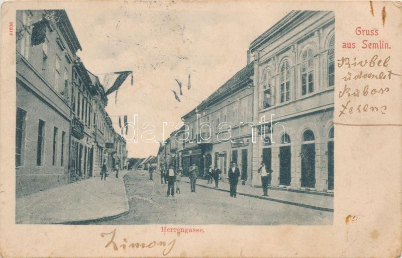 Zimony, Semlin; Herrengasse / street, shops (small tear) https://www.darabanth.com/de/234-Fernauktion/234.0/Ansichtskarten/Vojvodina~10/Zimony-Semlin-Herrengasse-street-shops-small-tear~II1065599