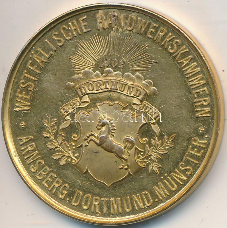 Német Birodalom ~1910-1920. "Wesztfáliai Kézműves Kamarák - Arnsberg, Dortmund, Münster / Kiemelkedő teljesítményért" aranyozott Br kitüntető emlékérem (39mm) T:2 fny.