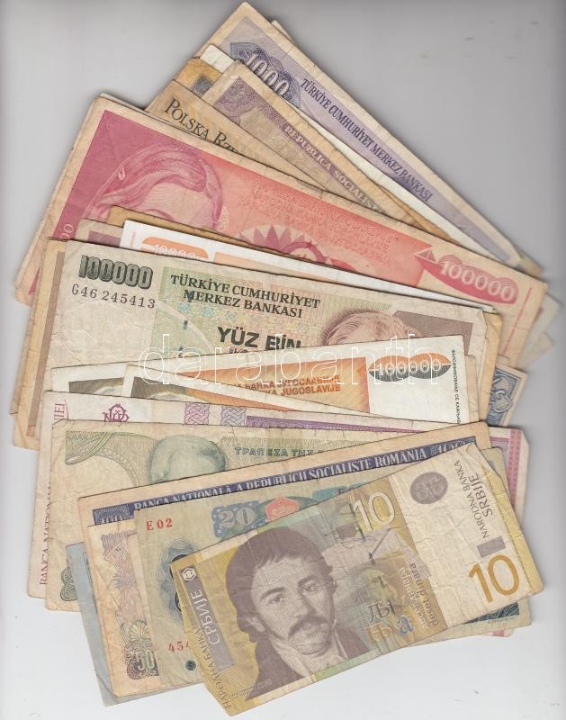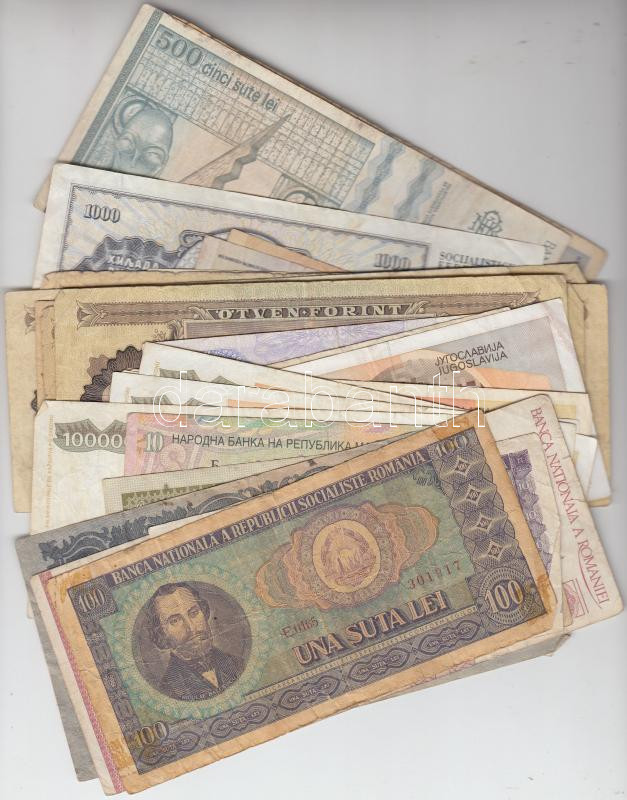 79db vegyes magyar és külföldi bankjegy, közte román, bolgár, görög bankjegyek T:vegyes