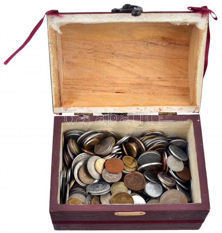 Beschreibung: Vegyes magyar és külföldi fémpénz tétel 970g-os súlyban, közte eurócentek is, sérült faládikában T:vegyes