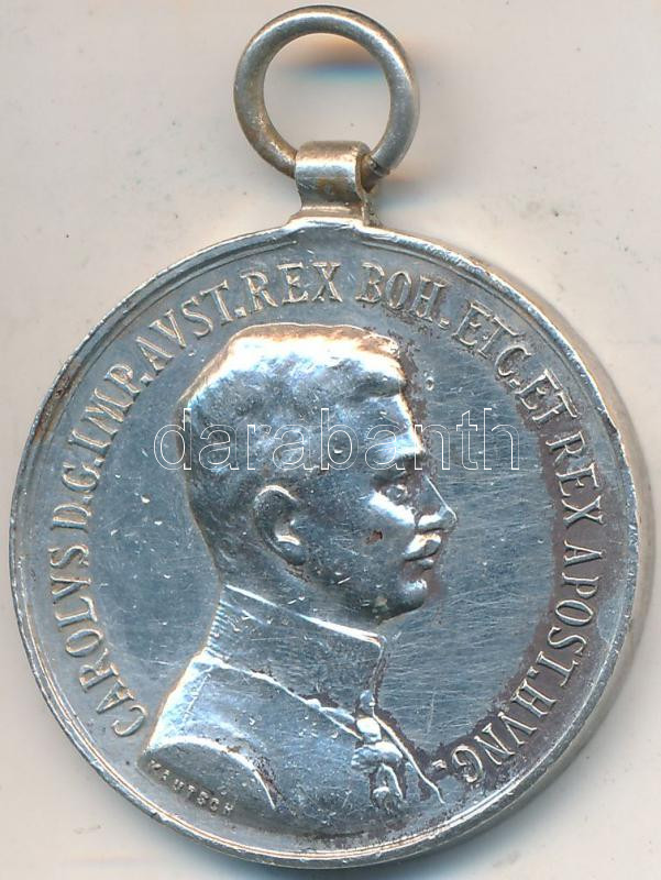 1917. "Károly Ezüst Vitézségi Érem II. osztály" Ag kitüntetés peremen "A" jelzéssel, mellszalag nélkül. Szign.: Kautsch T:2- apró ph.