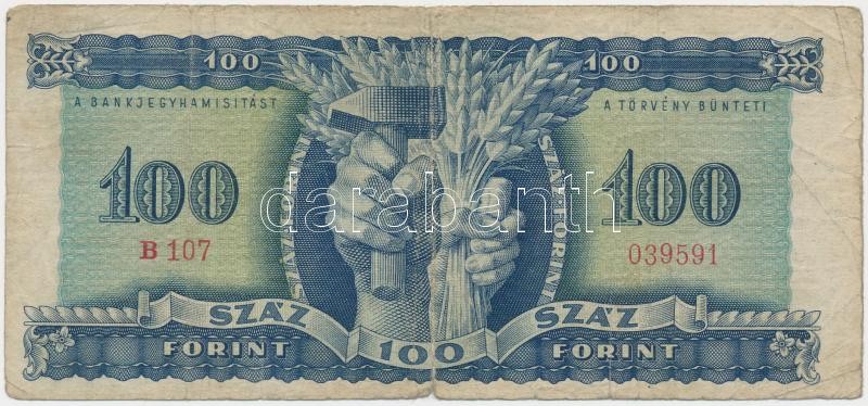 Adamo F26 https://www.darabanth.com/de/234-Fernauktion/234.0/Numismatik/Ungarische-Banknoten~30007/1946-100Ft-vizjeles-TIII--3Cbr3EAdamo-F26~II1069383