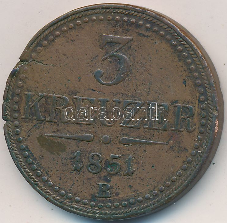 Adamo M6 https://www.darabanth.com/de/234-Fernauktion/234.0/Numismatik/Ungarische-Munzen~30008/1851B-3Kr-Cu-T2-3-ph-3Cbr3EAdamo-M6~II1068435