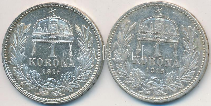 1915. 1K Ag "Ferenc József" (2x) T:2,2- https://www.darabanth.com/de/234-Fernauktion/234.0/Numismatik/Ungarische-Munzen~30008/1915-1K-Ag-Ferenc-Jozsef-2x-T2-2-~II1070445