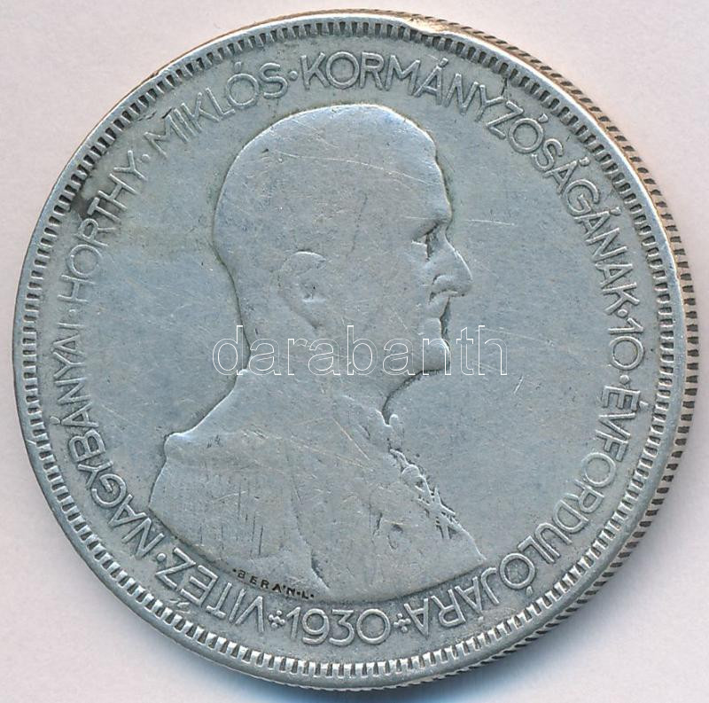 Beschreibung: 1930. 5P Ag "Horthy jobbra" T:3