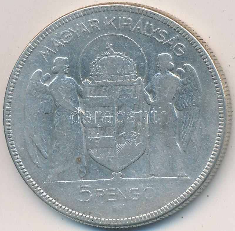 Beschreibung: 1930. 5P Ag "Horthy jobbra" T:3