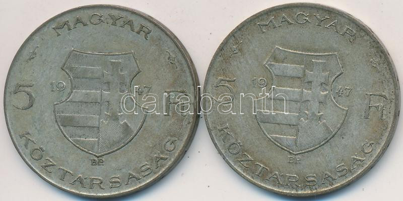 1947. 5Ft Ag "Kossuth" (2x) T:2-,3 https://www.darabanth.com/de/234-Fernauktion/234.0/Numismatik/Ungarische-Munzen~30008/1947-5Ft-Ag-Kossuth-2x-T2-3~II1069914