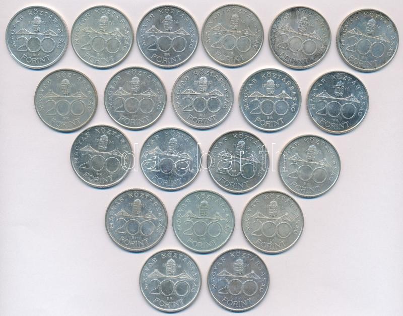 Beschreibung: 1992-1994. 200Ft Ag "MNB", "Deák" (20x) T:2,2-