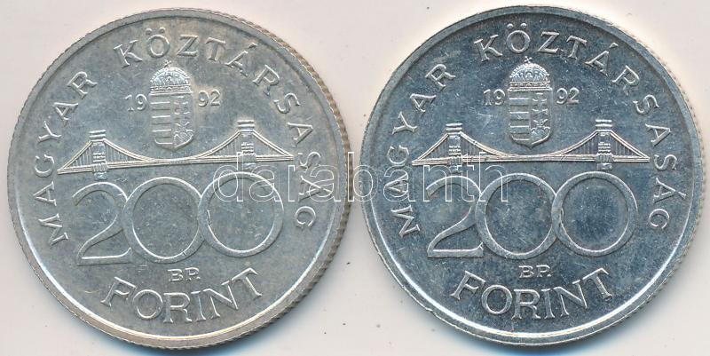 1992. 200Ft Ag "MNB" (2x) T:2,2- https://www.darabanth.com/de/234-Fernauktion/234.0/Numismatik/Ungarische-Munzen~30008/1992-200Ft-Ag-MNB-2x-T2-2-~II1068801