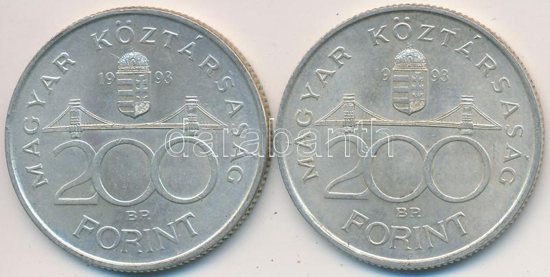 Beschreibung: 1993. 200Ft Ag "MNB" (2x) T:2,2-