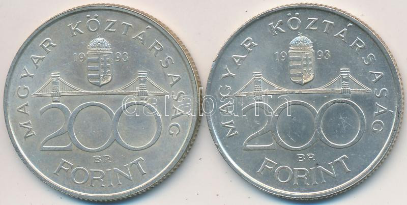 Beschreibung: 1993. 200Ft Ag "MNB" (2x) T:2,2-