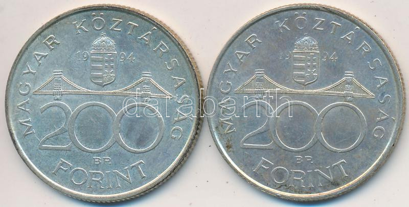 1994. 200Ft Ag "Deák" (2x) T:2,2- https://www.darabanth.com/de/234-Fernauktion/234.0/Numismatik/Ungarische-Munzen~30008/1994-200Ft-Ag-Deak-2x-T2-2-~II1068770