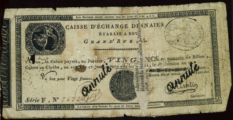 France / Rouen 1797-1803.... https://www.darabanth.com/de/234-Fernauktion/234.0/Numismatik/Weltweit-Banknoten~30011/Franciaorszag-Rouen-1797-1803-20Fr-TIV-V-3Cbr3EFrance-Rouen-1797-1803-20-Francs-CG-Pr-3Cbr3EK~II184530