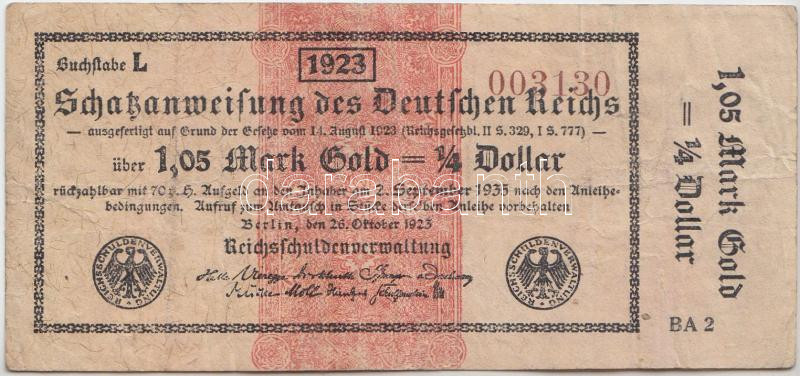 Germany / Weimar Republic 1923.10.26. 1,05 Goldmark (1/4 Dollar) Schatzanweisungen C:F