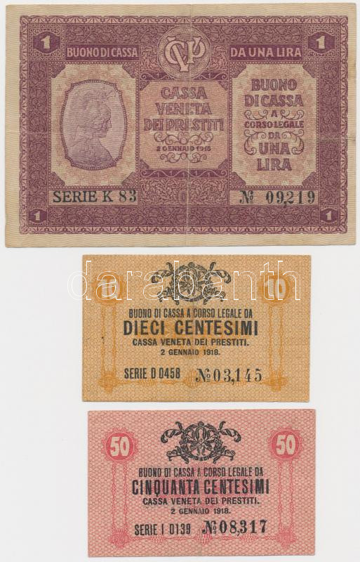 Olaszország/Velence/osztrák-magyar megszállás 1918. 10c + 50c + 1L T:I... https://www.darabanth.com/de/234-Fernauktion/234.0/Numismatik/Weltweit-Banknoten~30011/OlaszorszagVelenceosztrak-magyar-megszallas-1918-10c-plus-50c-plus-1L-TIII-3Cbr3EItalyVeniceAustr~II1071505