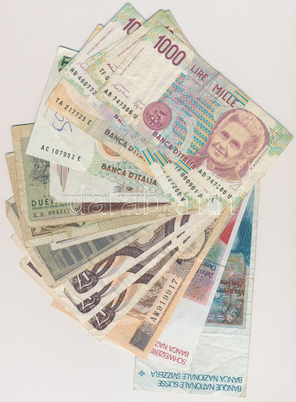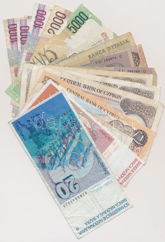 Beschreibung: Vegyes: Svájc 1979-1992. 10Fr + 20Fr + NDK 1971. 10M + 1975. 5M + Ciprus 1992-1993. 1Ł (3x) + 2001. 1Ł + Olaszország 1969. 1000L (2x) + 1979-1983. 1000L + 2000L + 5000L + 1985. 5000L + 1990. 1000L (4x) + 2000L T:vegyes