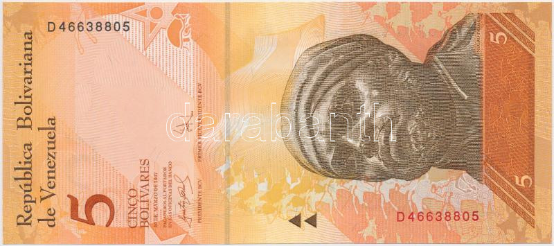 Venezuela 2007. 5 Bolivares C:UNC https://www.darabanth.com/de/234-Fernauktion/234.0/Numismatik/Weltweit-Banknoten~30011/Venezuela-2007-5B-TI-3Cbr3EVenezuela-2007-5-Bolivares-CUNC~II1064787