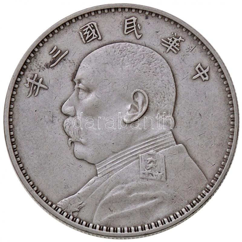 Kína 1914. 1$ (1Y) Ag "Yüan Shihkai" 6 karakter T:2- polírozott