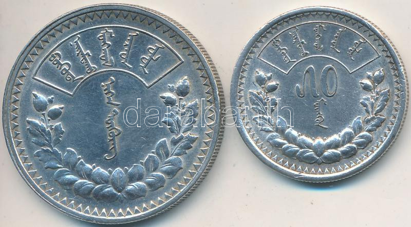 Beschreibung: Mongólia 1925. 1T Ag "Soembo" + 50M Ag "Soembo" T:2