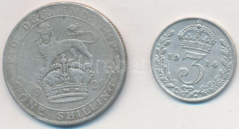 Nagy-Britannia 1914. 3p Ag "V. György" + 1921. 1Sh Ag "V. György" T:2-... https://www.darabanth.com/de/234-Fernauktion/234.0/Numismatik/Weltweit-Munzen~30012/Nagy-Britannia-1914-3p-Ag-V-Gyorgy-plus-1921-1Sh-Ag-V-Gyorgy-T2-3-3Cbr3EGreat-Britain-1914-~II1064967