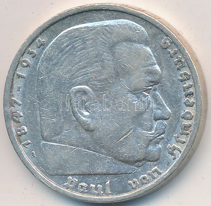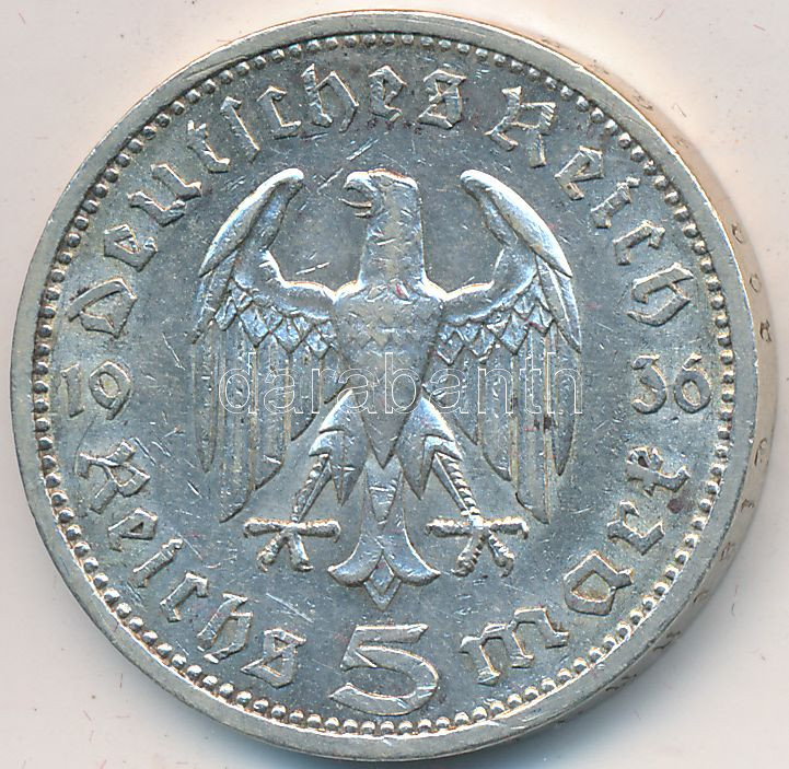 German Third Reich 19... https://www.darabanth.com/de/234-Fernauktion/234.0/Numismatik/Weltweit-Munzen~30012/Nemet-3-Birodalom-1936A-5M-Ag-Hindenburg-T2--3Cbr3EGerman-Third-Reich-1936A-5-Marks-Ag-Hindenbu~II1070082