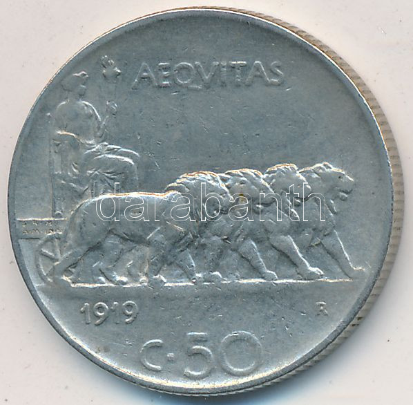 Italy 1919R 50 Centesimi ... https://www.darabanth.com/de/234-Fernauktion/234.0/Numismatik/Weltweit-Munzen~30012/Olaszorszag-1919R-50c-Ni-reces-peremmel-T2--3Cbr3EItaly-1919R-50-Centesimi-Ni-with-reeded-edge-CV~II1070528