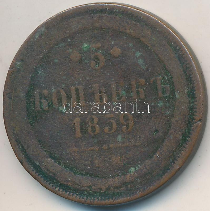 Russian Empire 1859. 5... https://www.darabanth.com/de/234-Fernauktion/234.0/Numismatik/Weltweit-Munzen~30012/Orosz-Birodalom-1859-5k-Cu-II-Sandor-T3-3--3Cbr3ERussian-Empire-1859-5-Kopeks-Cu-Alexander-II~II1066300