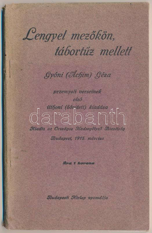 Lengyel mezőkön, tábortűz mellett. Gyóni (Áchim) Géza przemysli verseinek első itthoni (bővített) kiadása. Bp., 1915, Országos Hadsegélyező Bizottság. Kiadói papírkötés, jó állapotban.