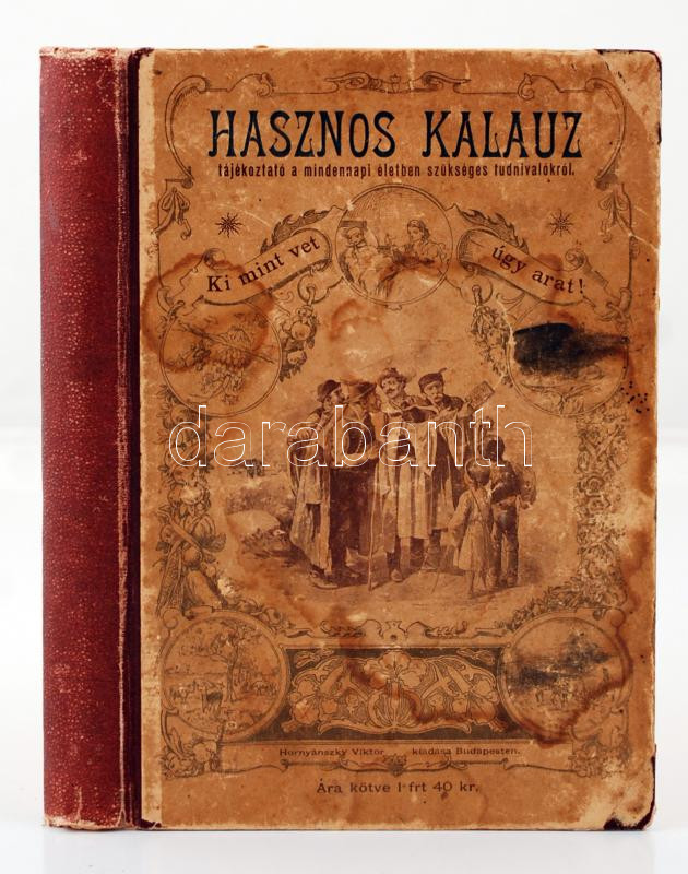 Hasznos kalauz - Útmutató az életben előforduló mindennemű tudnivalókra, ismeretekre nézve. Bp., 1899. Hornyánszky ny. XVI, 313 p. Kiadói, illusztrált félvászon kötésben. Kötés kissé laza.