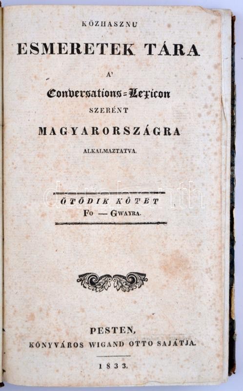 Pesten, 1831-1834. Wigand Ottó. XX+538+(18)p.; (2)+582p.; (2)+568p.; (2)+ +553p.; (2)+533p.; (2)+573p.; (2)+483p.; (2)+579p.; (2)+506p.; (2)+549p.; (2)+512p. Az első modern értelemben vett magyar lexikon. Szerkesztője Döbrentei Gábor volt, aki neves alkotógárdát gyűjtött maga köré. Félbőr kötésben. Egy két kisebb hibától eltekintve jó állapotú sorozat