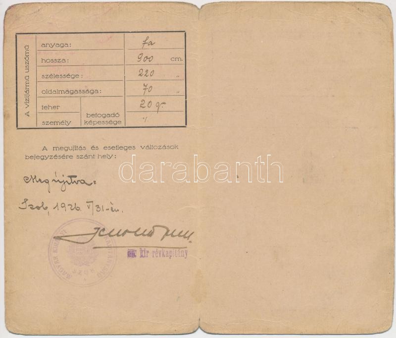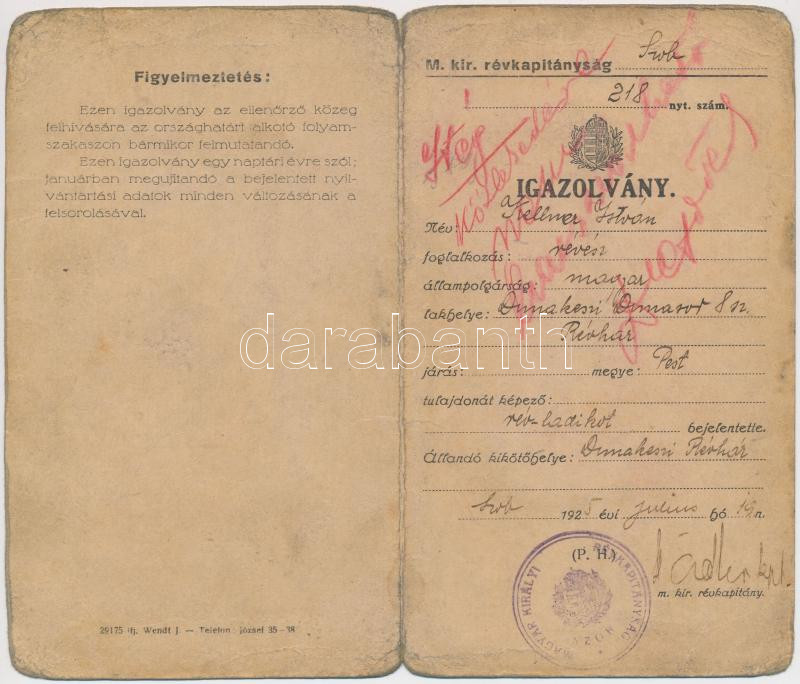 1925. Révész igazolvány. M. kir. Révkapitányság. https://www.darabanth.com/de/235-Fernauktion/235.0/Andere-Sammelgebiete/Dokument~400032/1925-Revesz-igazolvany-M-kir-Revkapitanysag~II1074905