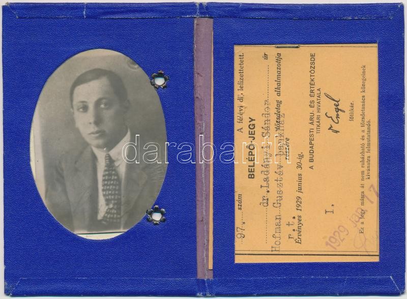 Beschreibung: 1929 Tőzsde igazolvány fényképpel, bróker részére