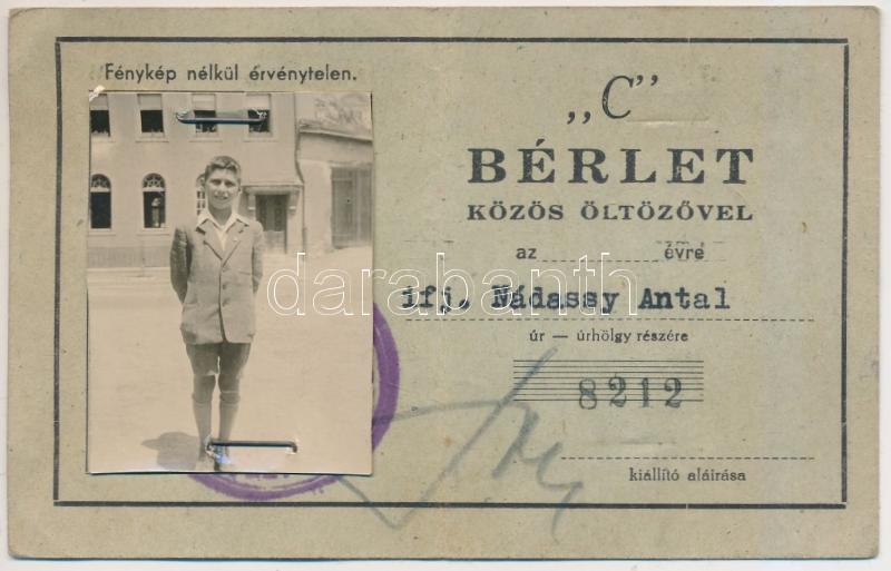 Beschreibung: cca 1940-1950 Az Egyesült Izzólámpa és Villamossági Rt. Alkalmazottai Sport- és Jóléti Egyesületének Vízisport-Telepe által kiadott fényképes bérlet